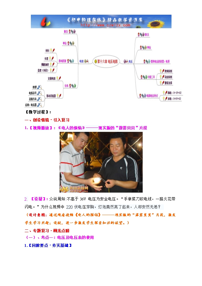(设计意图:通过观看视频《电人的烦恼》------现实版的“霹雳贝贝”片段,激发学生学习兴趣;设疑,进一步激发学生探索知识的欲望。)