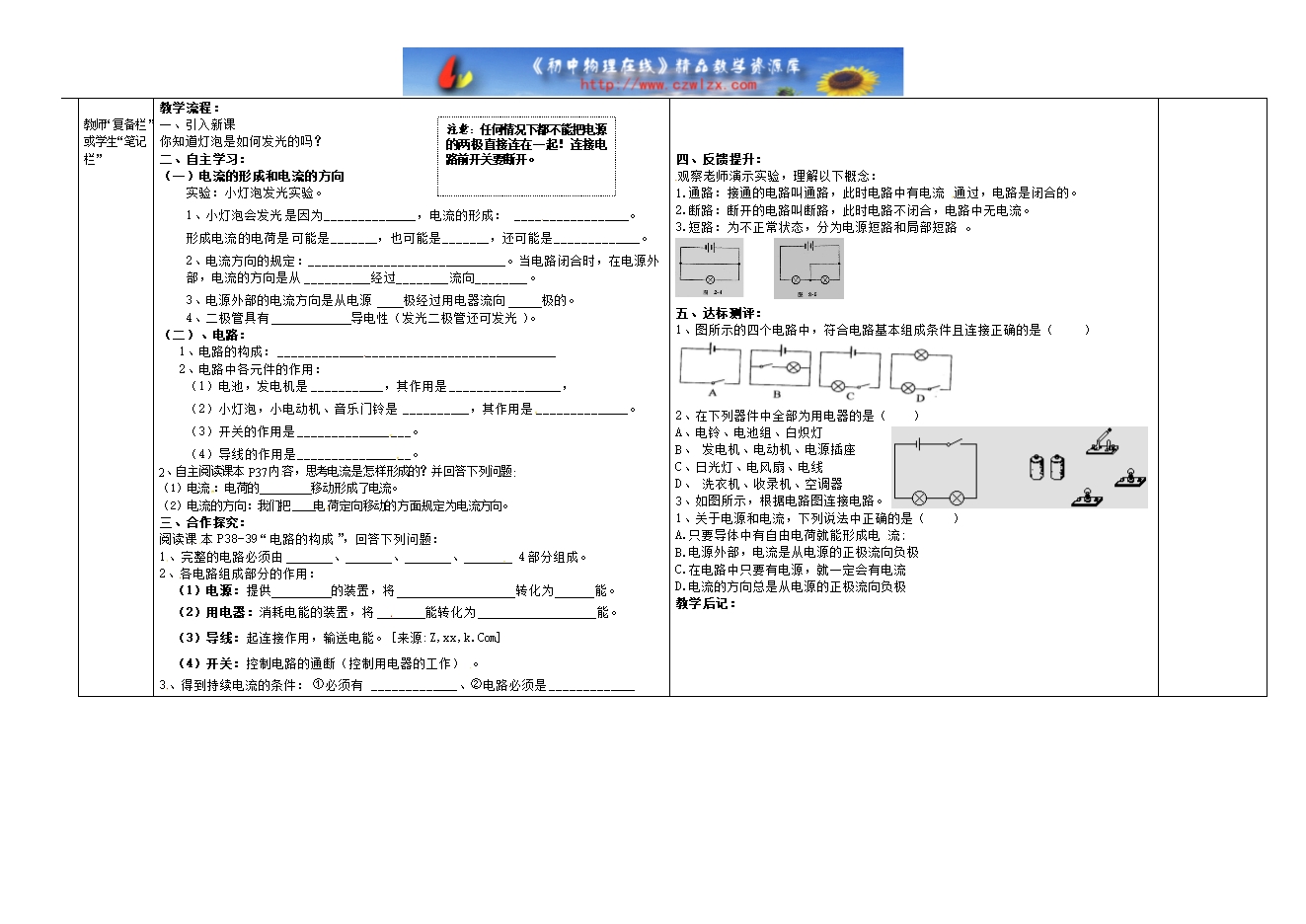 阅读课 本P38-39“电路的构成”,回答下列问题: