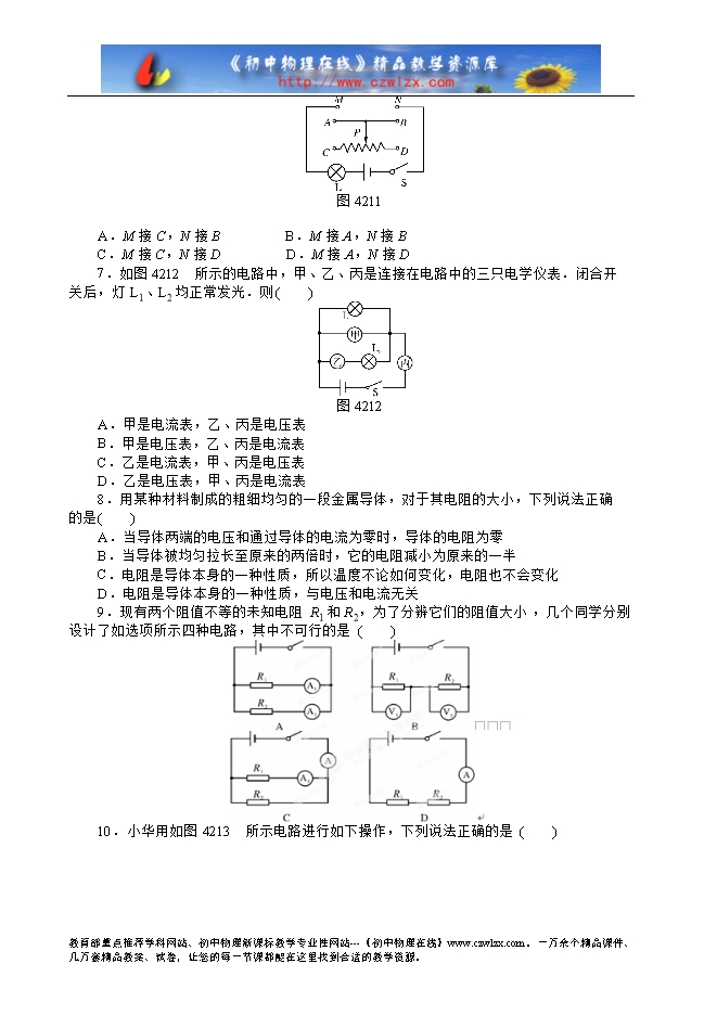 4.(2012年山西)如图4-2-10所示,在探究串联电路中电压的规律时,小雨同学用电压表测出ab、bc、ac两端的电压分别为Uab=3 V,Ubc=3 V,Uac=6 V,在表格中记录数据后,下一步应该做的是( )