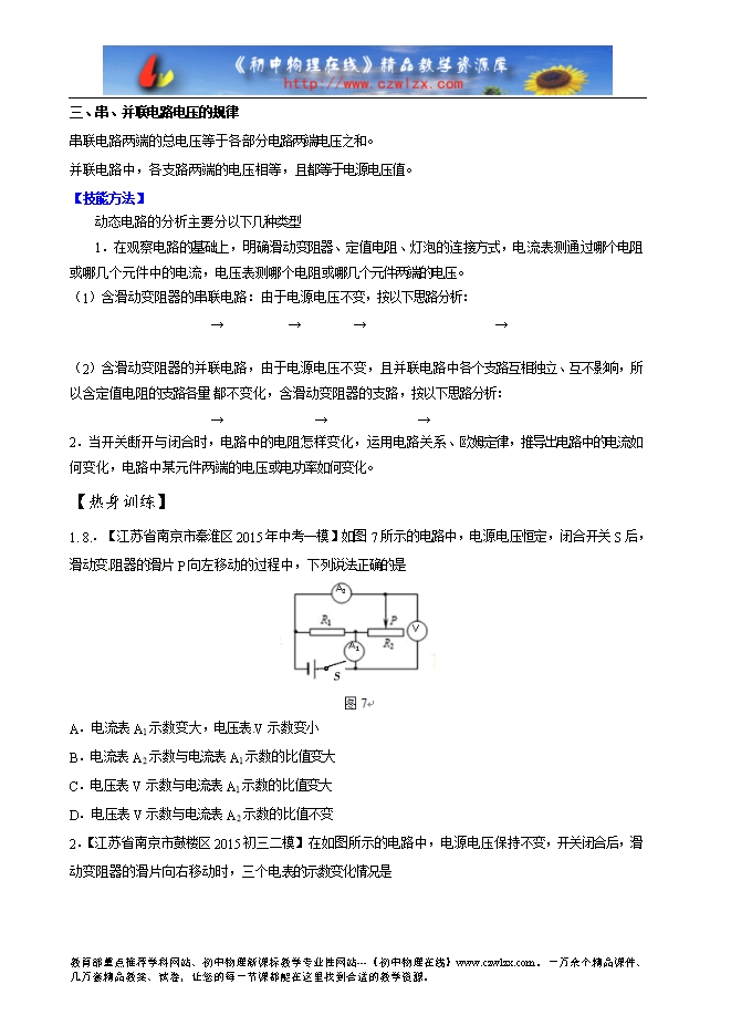2015年中考母题题源汇编:16动态电路的分析(含解析)