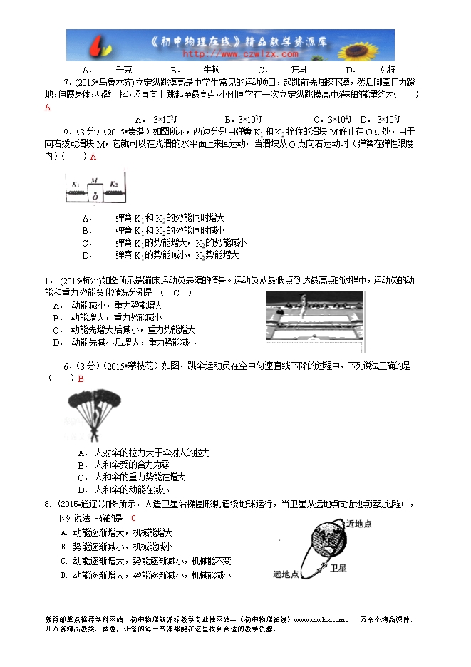 2015年全国中考物理110套试题分类汇编:11功和机械能