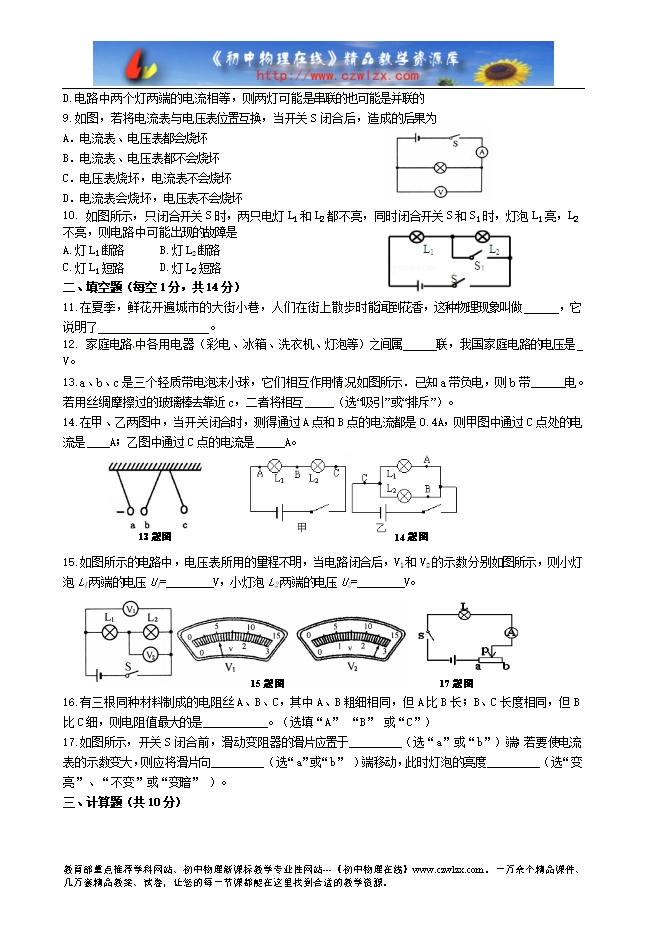 5.滑动变阻器能够改变电阻,是靠改变接入电路中电阻线的