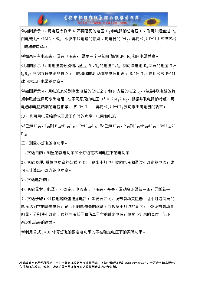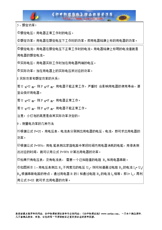 1、电功率的物理意义:表示用电器消耗电能(电流做功)快慢的物理量。