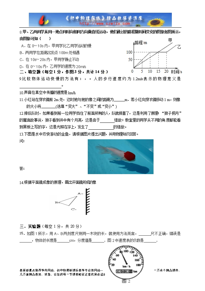 - 1664宁夏中宁二中2015-2016学年八年级上学期期中考试物理试卷(新课标北师大版2015年11月,无答案)