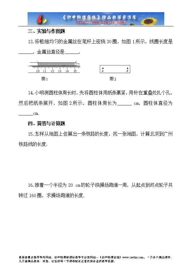 8.使用刻度尺测物体长度前,首先要观察刻度尺的______ 、______ 、和______.二、选择题