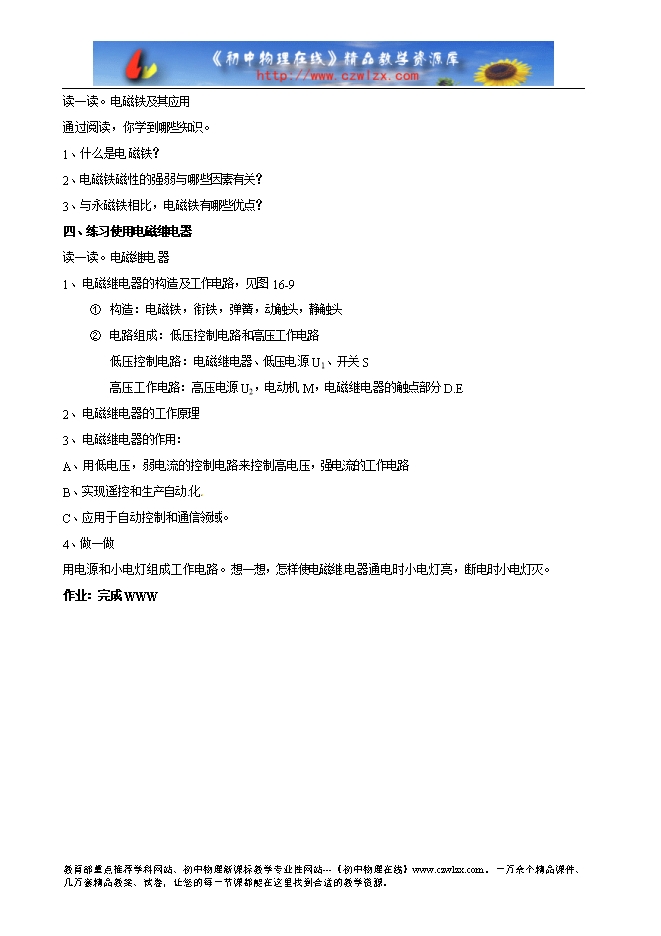 4、安培定则:用右 手握 住螺线管,让四指 弯曲且与螺线 管中的电流方向一致,则大拇指所指的那端就是通电螺线管的N极。见图16-18