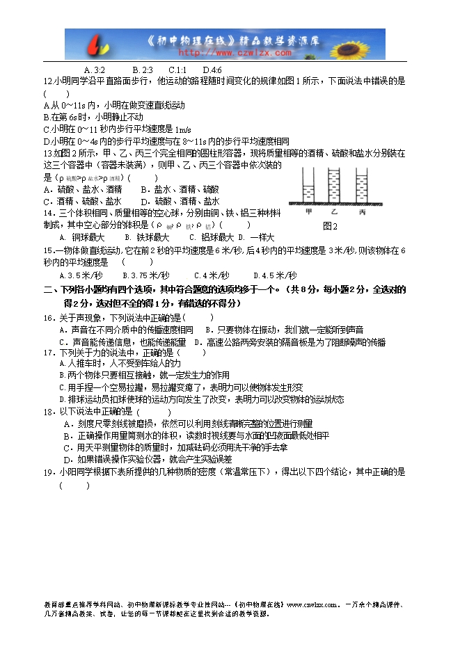 - 1664宁夏中宁二中2015-2016学年八年级上学期期中考试物理试卷(新课标北师大版2015年11月,无答案)