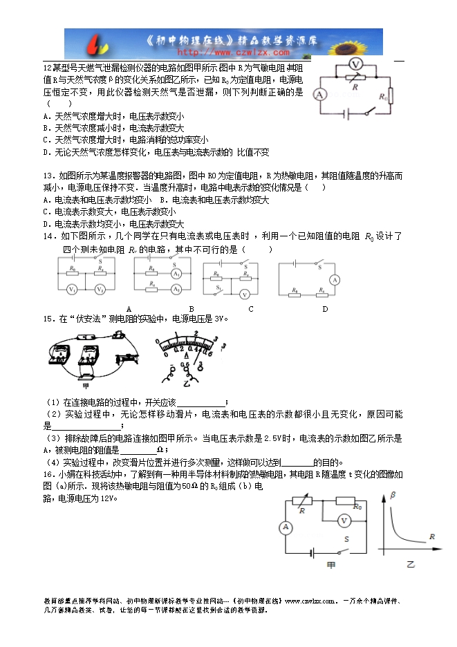 - 1533广东省深圳市文汇中学2015届九年级上学期物理周末作业:电学实验专题
