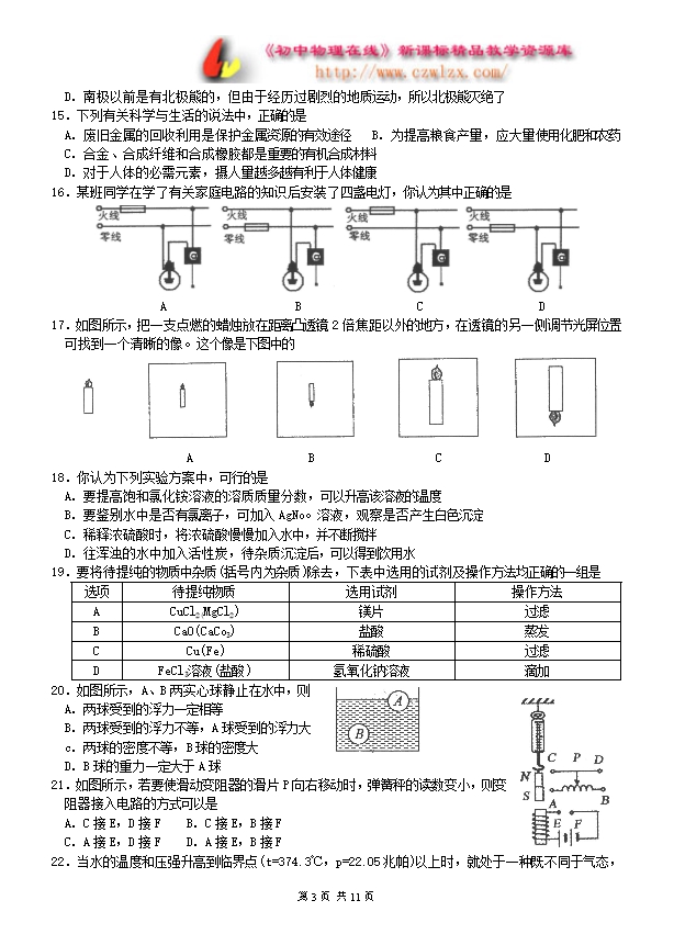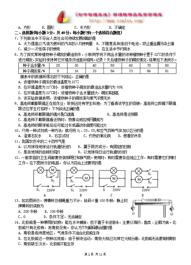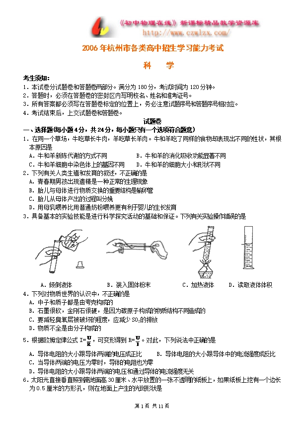浙江2006年各类高中招生学习能力考试试卷及答案(杭州课改版)