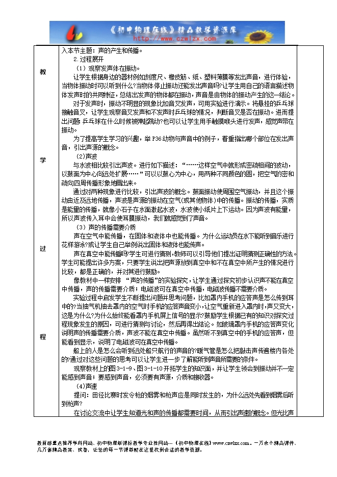 为了提高学生学习的兴趣,举P36动物与声音中的例子,着重指出哪个部位在发出声音,引出声源的概念。