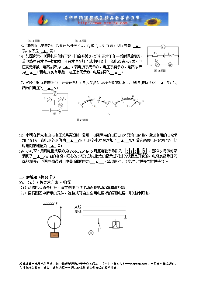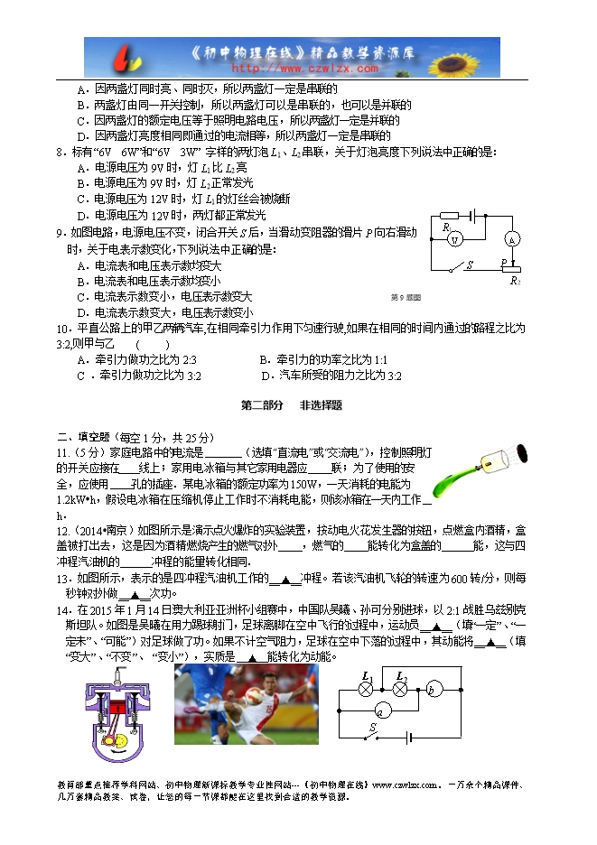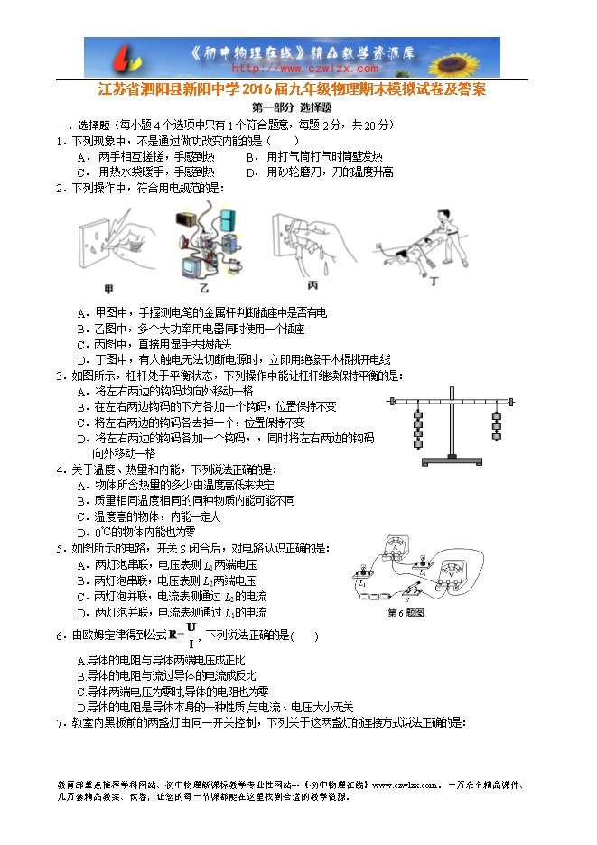 江苏省泗阳县新阳中学2016届九年级物理期末模拟试卷及答案
