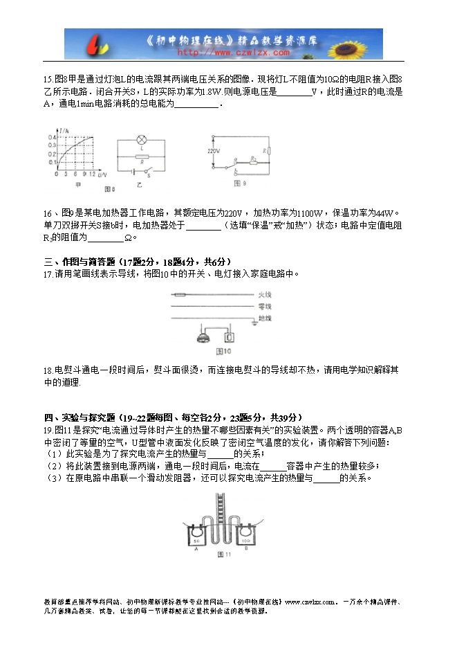 4.在“比较水不煤油吸热时升温快慢”的实验中,不需要控制的发量是