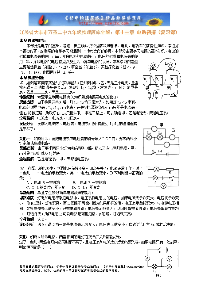 江苏省大丰市万盈二中九年级物理题库全解:第十三章 电路初探(复习课)
