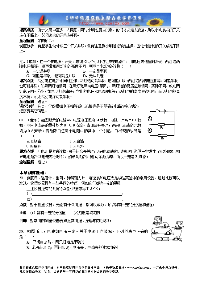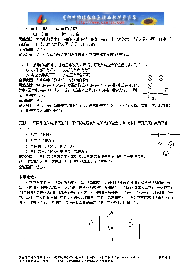 命题意图 考查学生利用电路有关知识辨别电路及电表的能力。