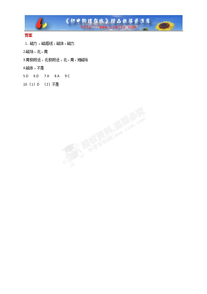 人教版九年级物理《20.1磁现象 磁场》同步练习及答案3