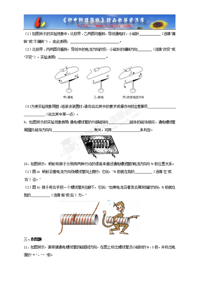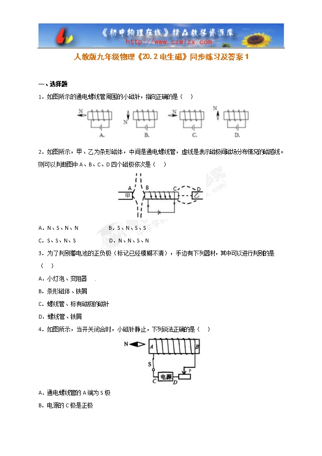 人教版九年级物理《20.2电生磁》同步练习及答案1