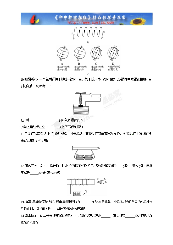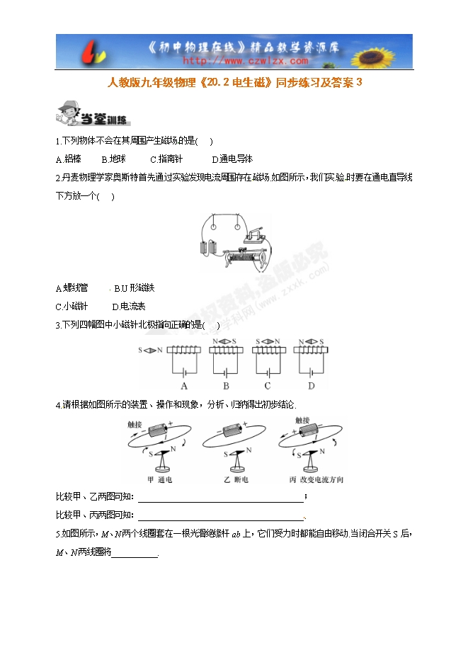 人教版九年级物理《20.2电生磁》同步练习及答案3
