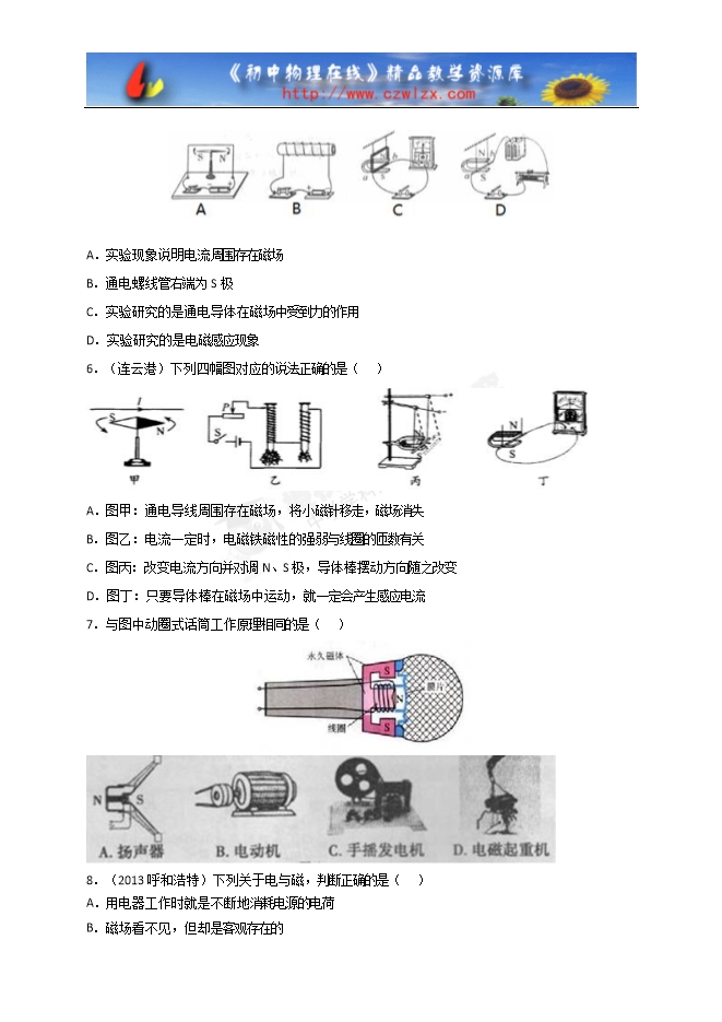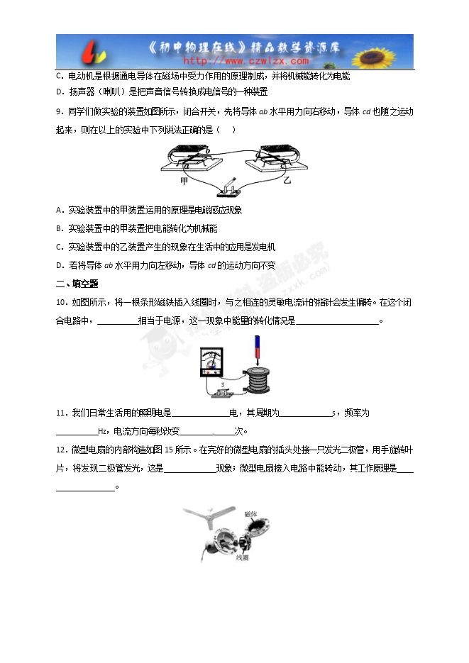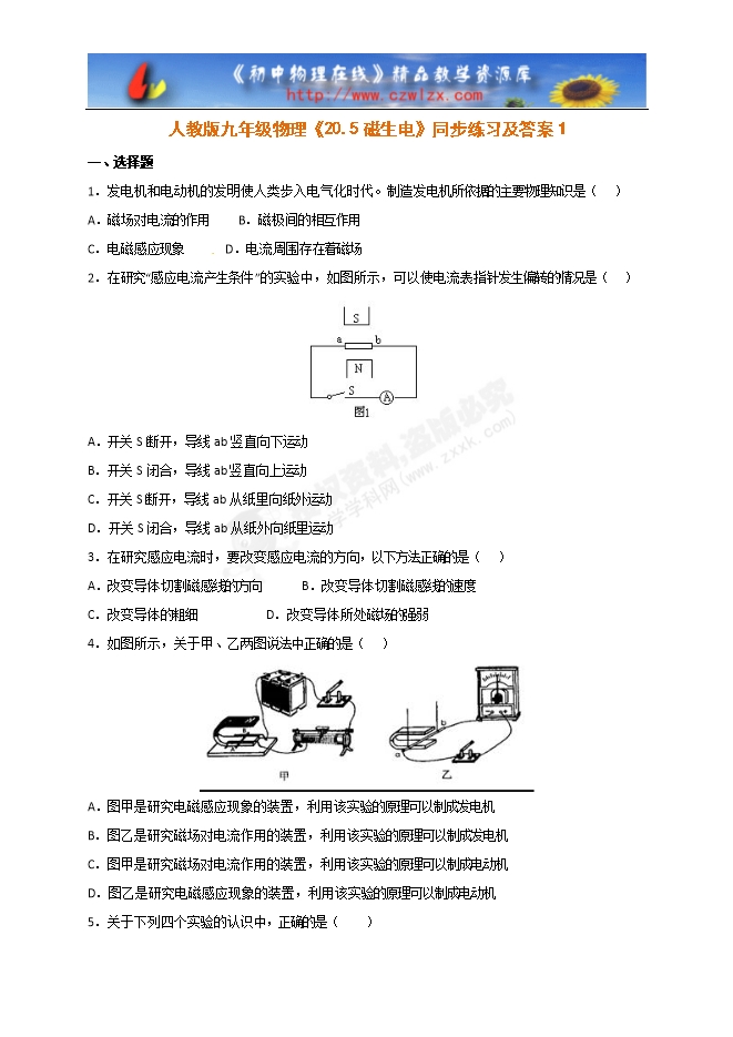 1.发电机和电动机的发明使人类步入电气化时代。制造发电机所依据的主要物理知识是( )