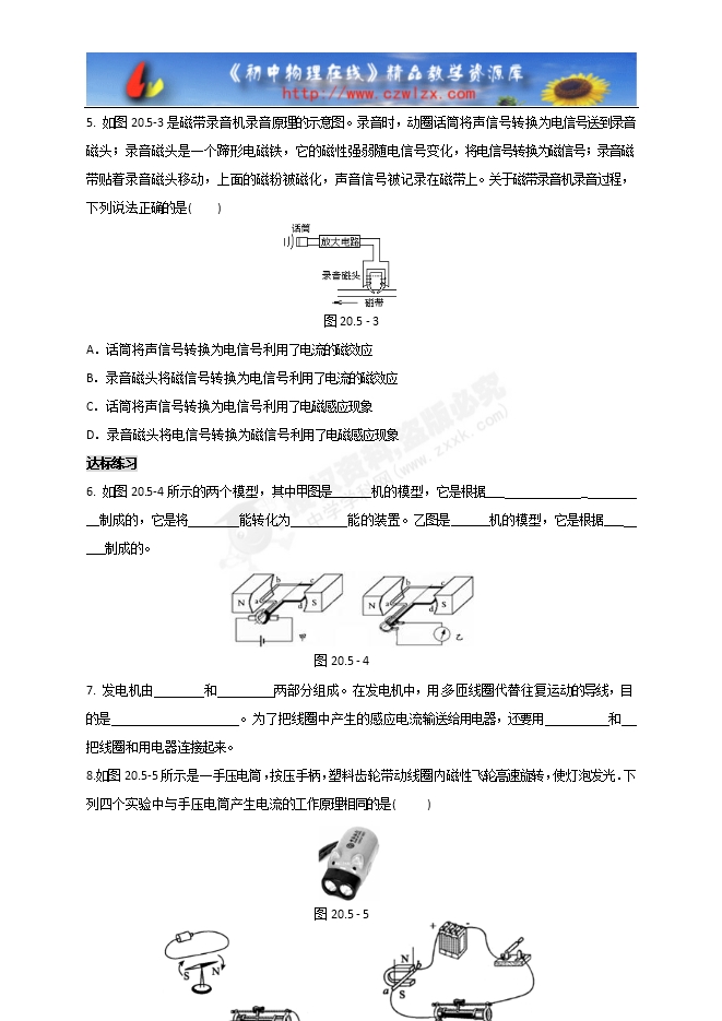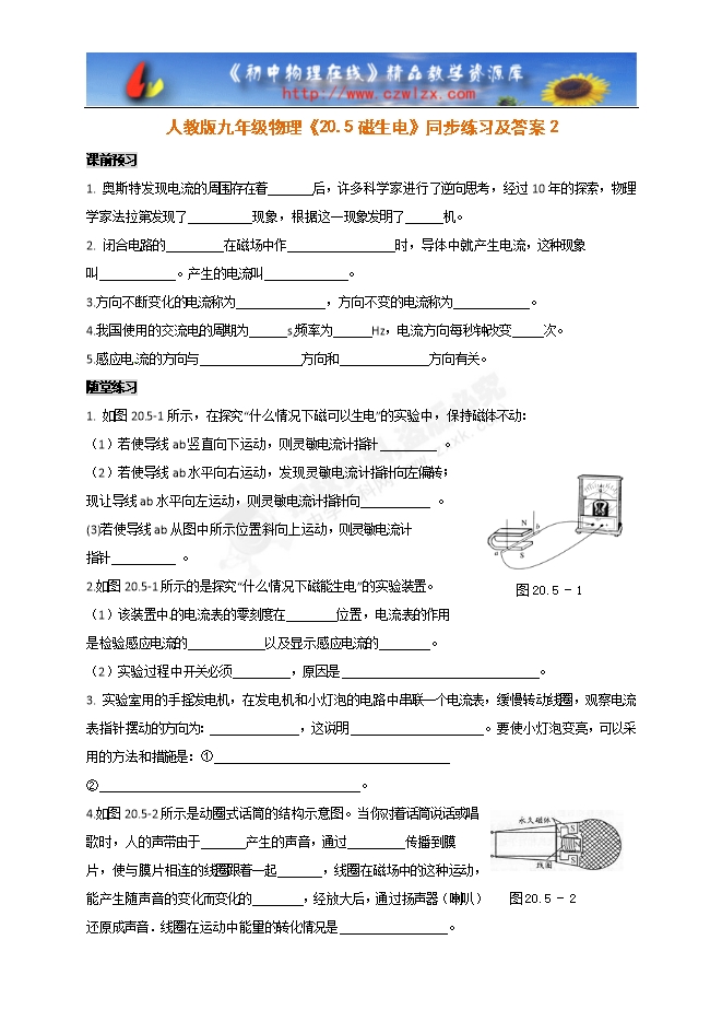 人教版九年级物理《20.5磁生电》同步练习及答案2