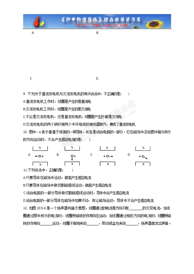 - 上一份试卷:人教版九年级物理《20.5磁生电》同步练习及答案1