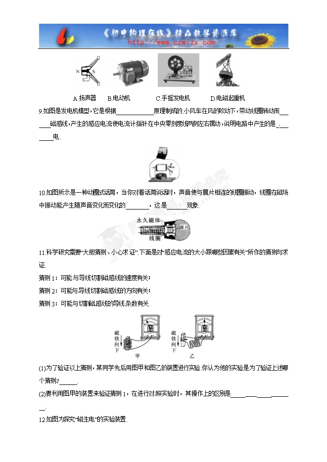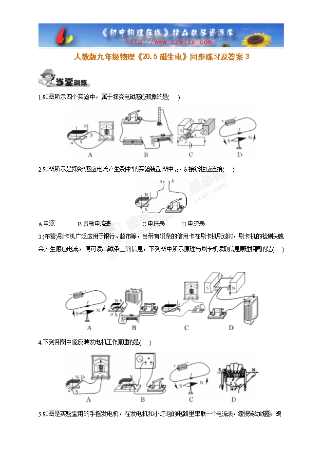 人教版九年级物理《20.5磁生电》同步练习及答案3