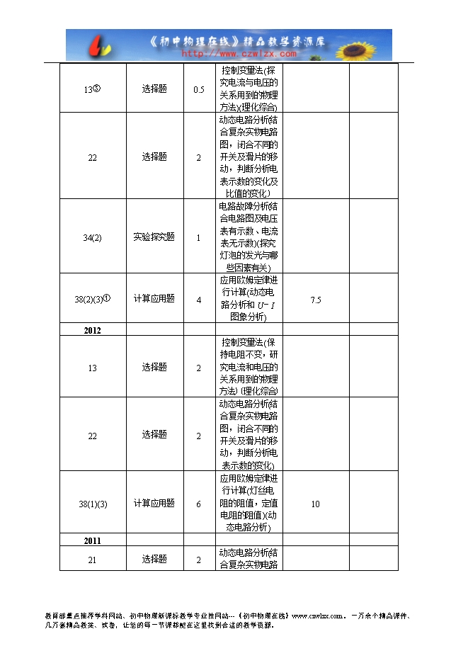 13③ 选择题 0.5 控制变量法(探究电流与电压的关系用到的物理方法)(理化综合)