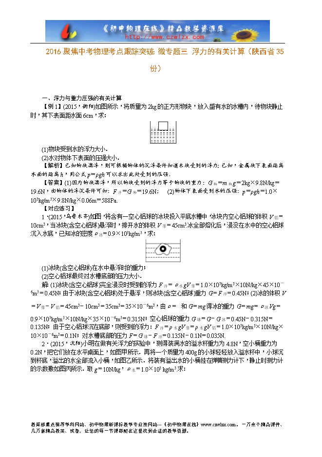 2016聚焦中考物理考点跟踪突破:微专题三 浮力的有关计算(陕西省35份)