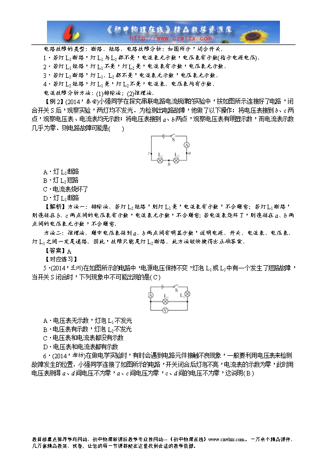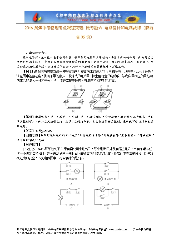2016聚焦中考物理考点跟踪突破:微专题六 电路设计和电路故障(陕西省35份)