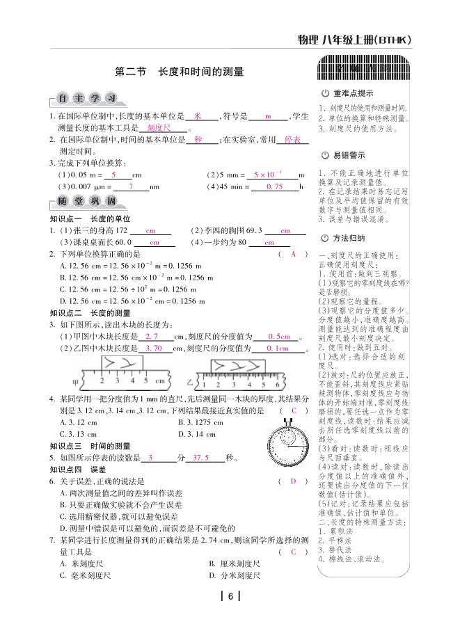 测量结果 1标准大气压p0=_______mmHg=________cmHg=__________Pa