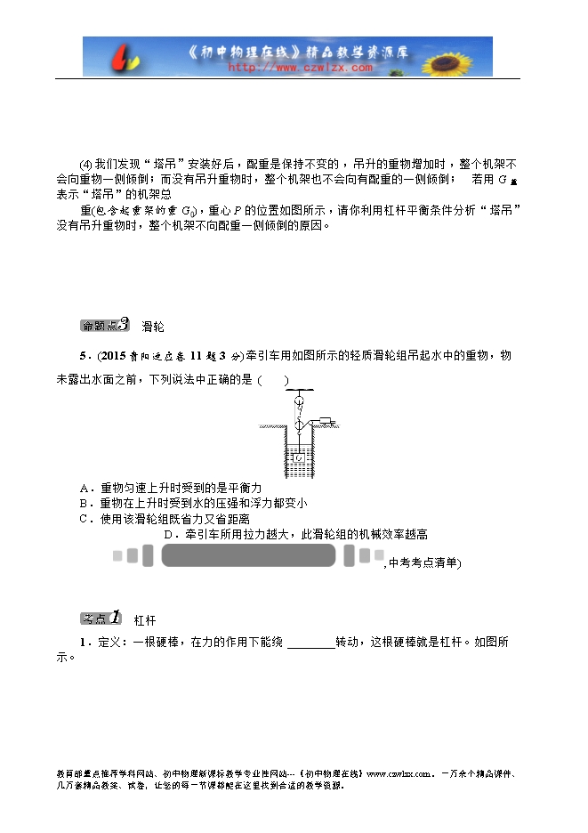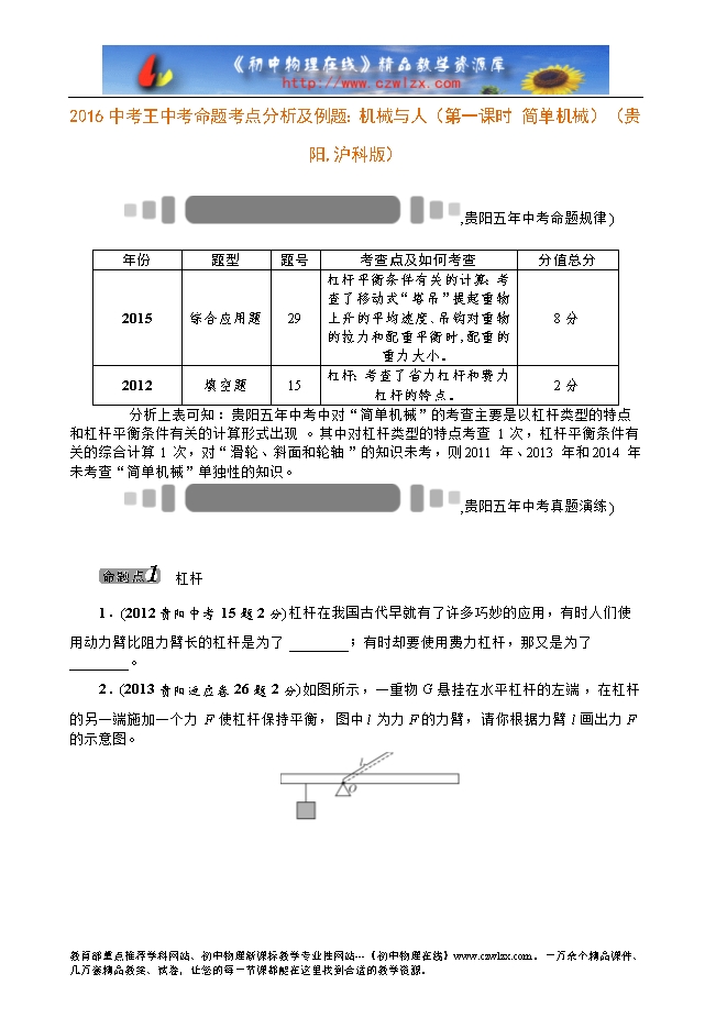 2016中考王中考命题考点分析及例题:机械与人(第一课时 简单机械)(贵阳,沪科版)