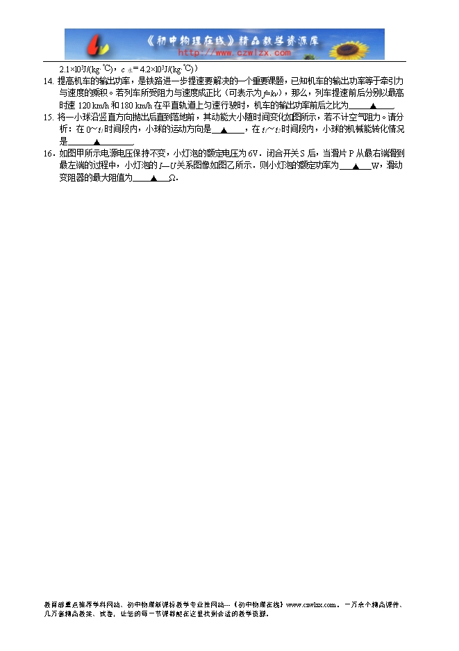 - 1419贵港市2016届初中毕业班第一次教学质量监测物理试题及答案