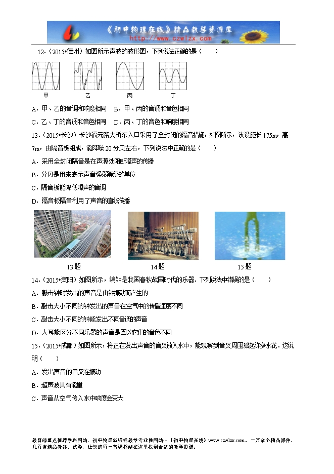2.(2015?菏泽)下列与声现象有关的说法中正确的是( )