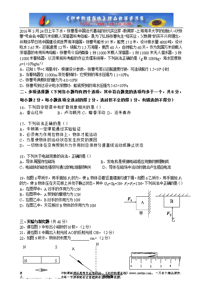 - 332024-2025学年上学期北京市九年级入学考试物理模拟试卷2(word版含解析)