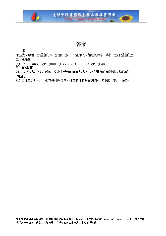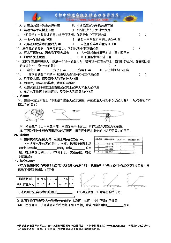 5.如图所示,物体重5N,一人用20N的力将 它压在竖直墙上,物体处于静止状态。这时物体受到的摩擦力大小是 N,方向是 。二、选择题