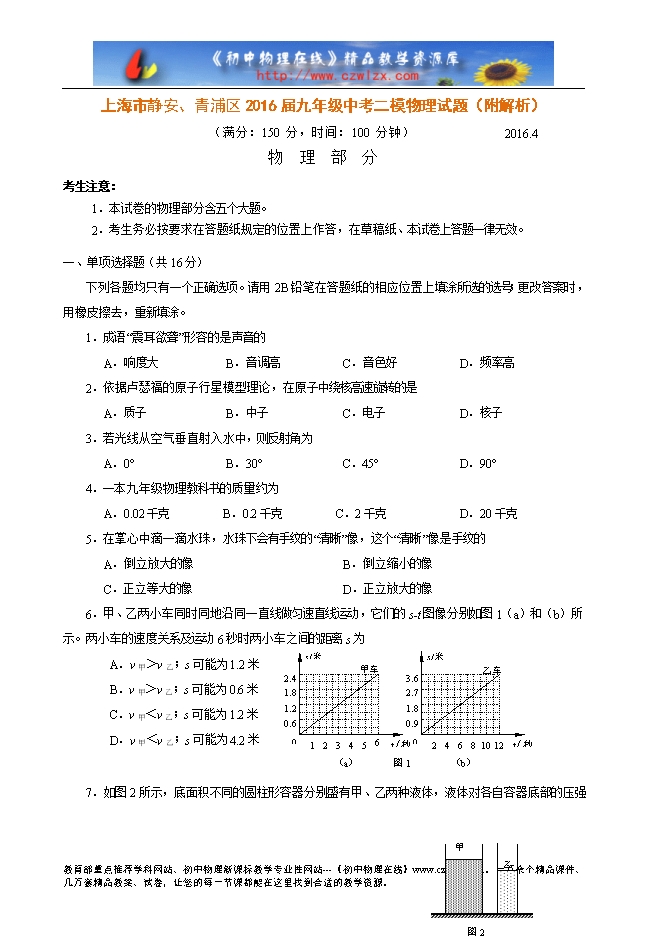 1266上海市静安、青浦区2016届九年级中考二模物理试题(附解析)0.00B0.00Bdocczwlzx静安区教研室czwlzx/UploadFiles/UserPic/UserAvatars/15219_150_150.jpg