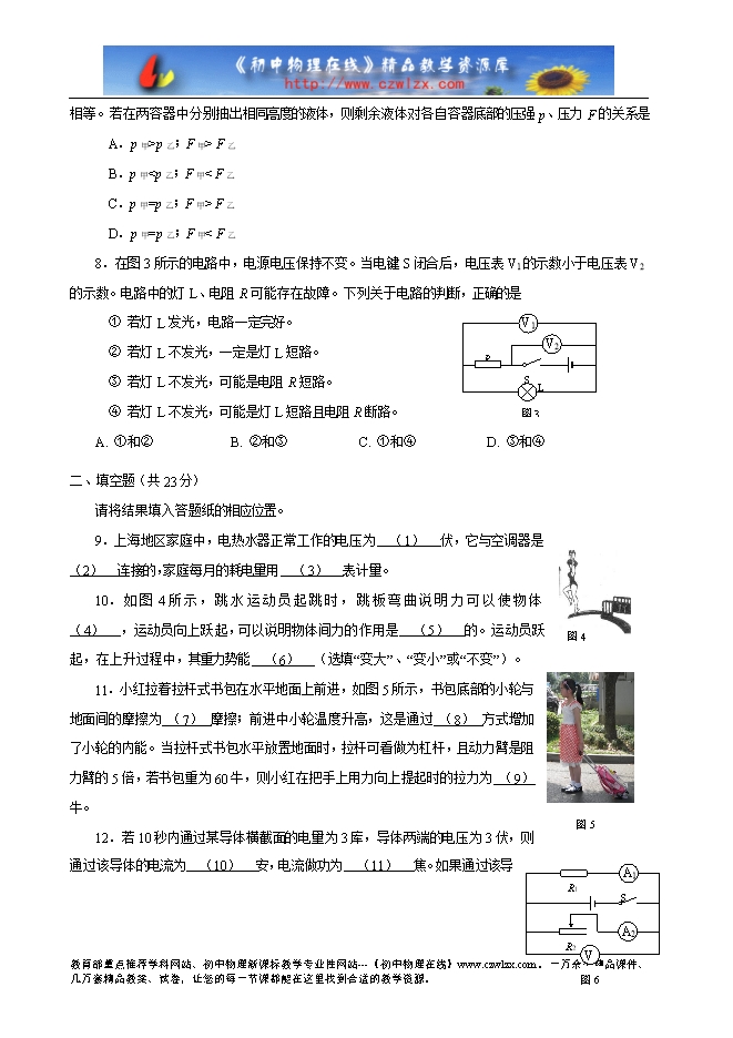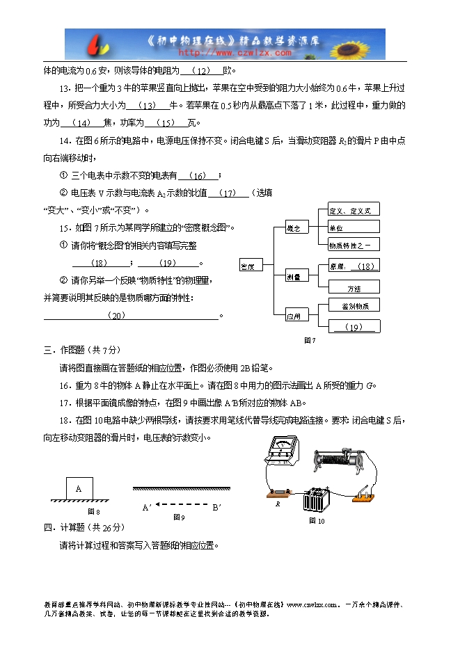 静安区教研室12016年中考物理二模试题,上海市原创2016年05月12日/UploadFiles/nopic.gif