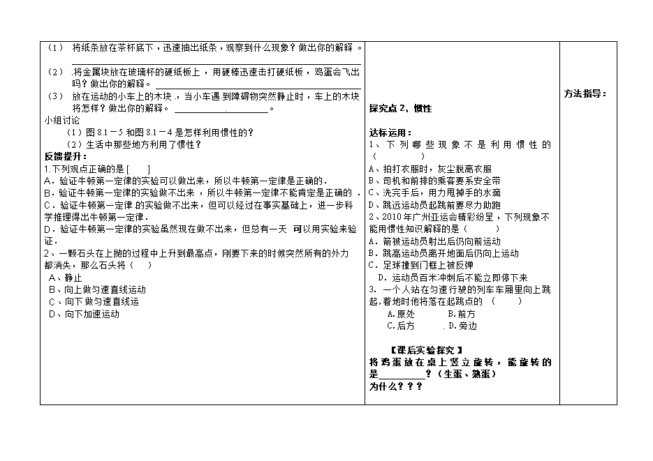 3、知道什么是惯性。认识一 切物体都有惯性。[来源:学+科+网]