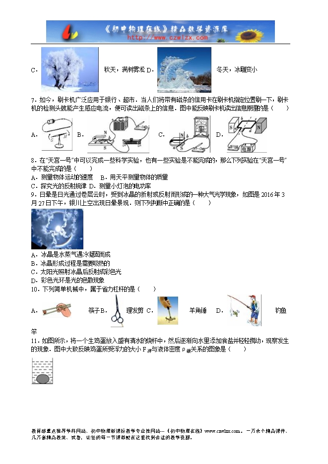 A.南京冬天最低气温约﹣35℃ B.一只鸡蛋的质量大约是5g