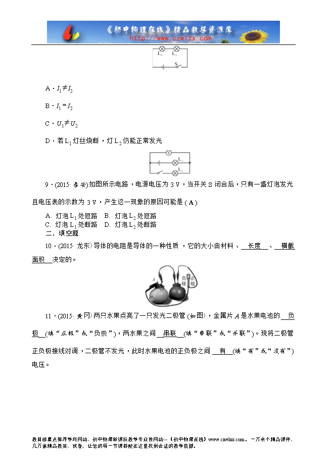 1.(2015?广西)关于电阻的大小,下列说法正确的是( D )
