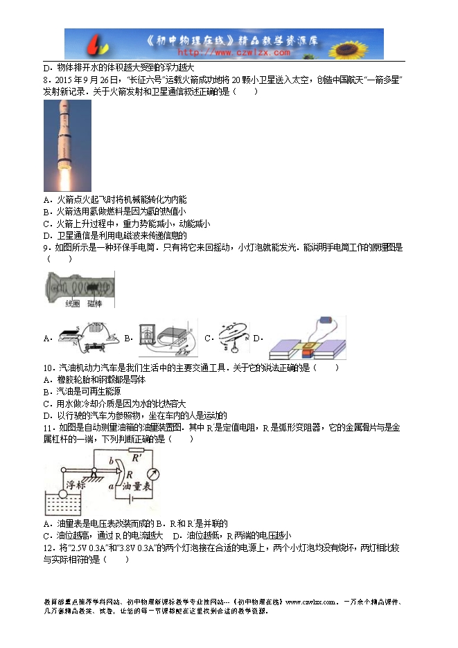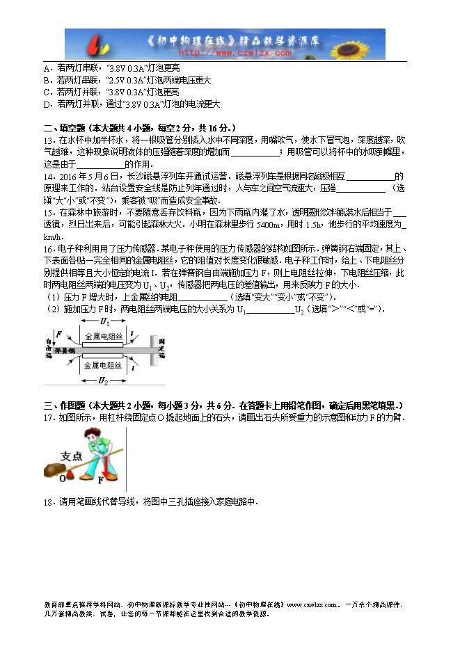 - 上一份试卷:江苏省南京市2016年中考物理试题(word解析版)