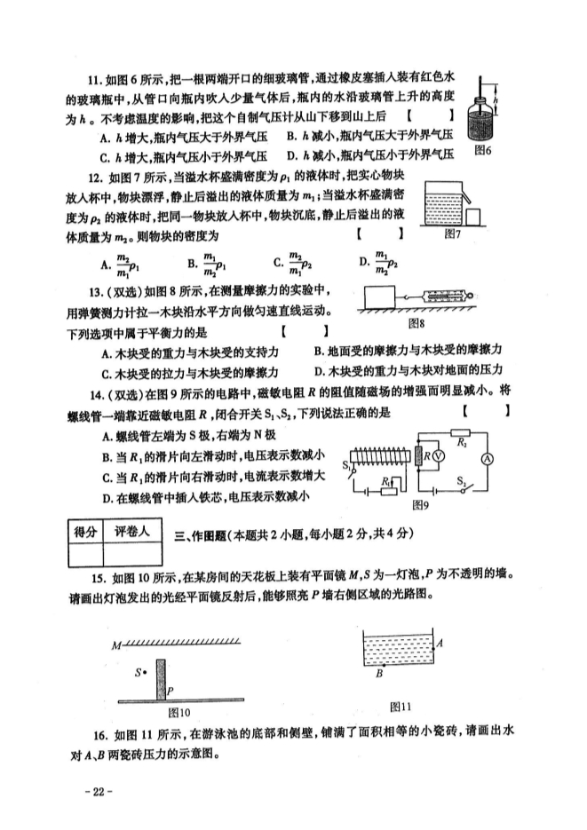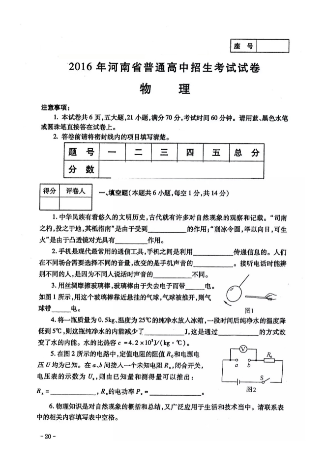 【内容简介】河南省2016年中考物理试题(扫描版,有答案)