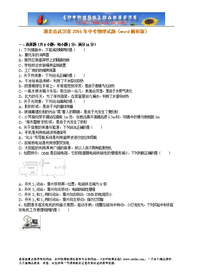 C、学校附近安装噪声监测器可以监测噪声的分贝,但不能减弱噪声,符合题意;
