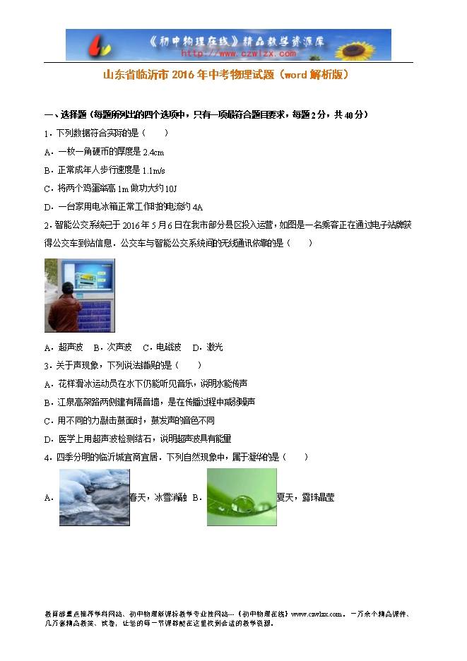 2.智能公交系统已于2016年5月6日在我市部分县区投入运营,如图是一名乘客正在通过电子站牌获得公交车到站信息.公交车与智能公交系统间的无线通讯依靠的是( )
