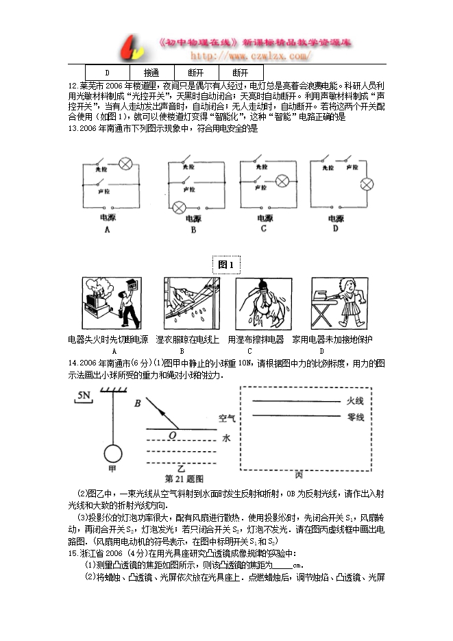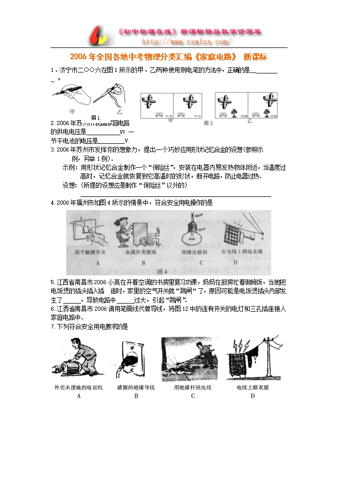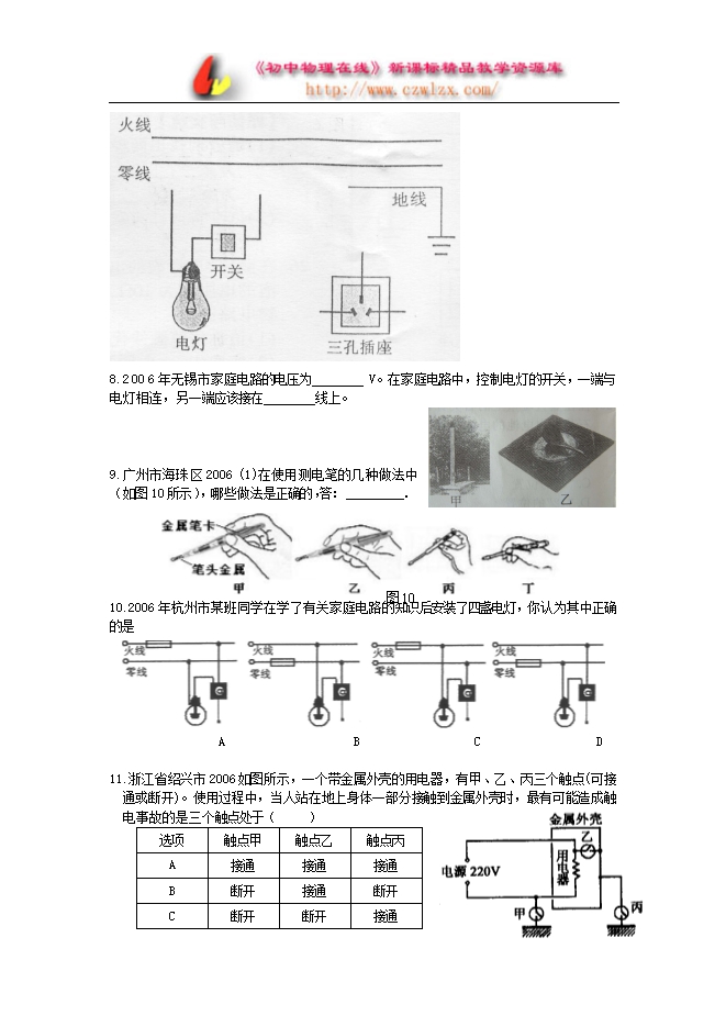 2006年全国各地中考物理分类汇编《家庭电路》 新课标