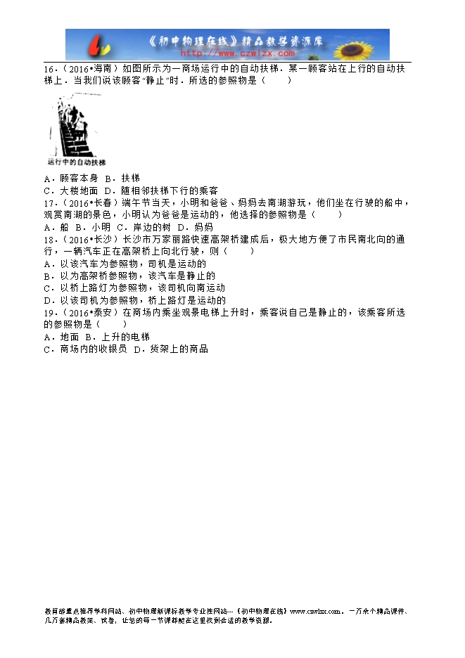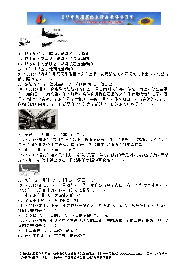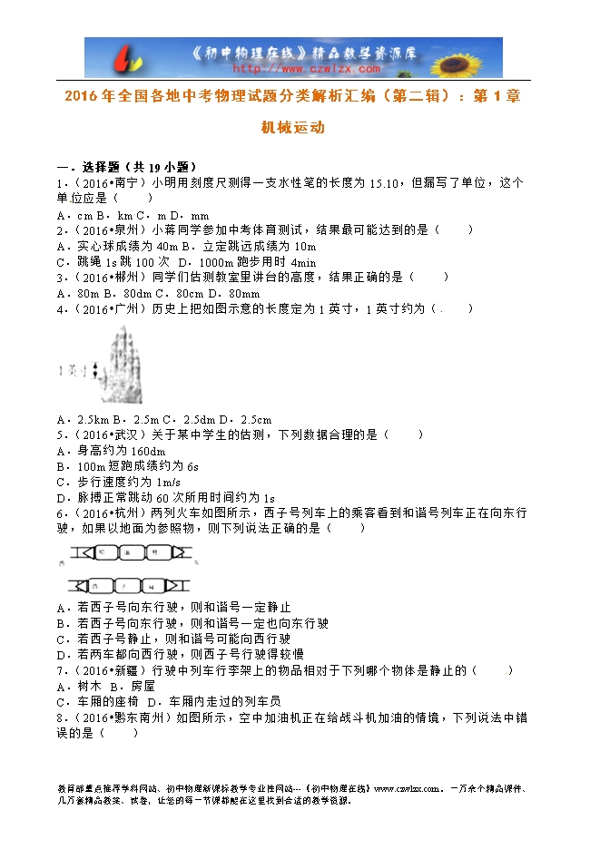 2016年全国各地中考物理试题分类解析汇编(第二辑):第1章 机械运动