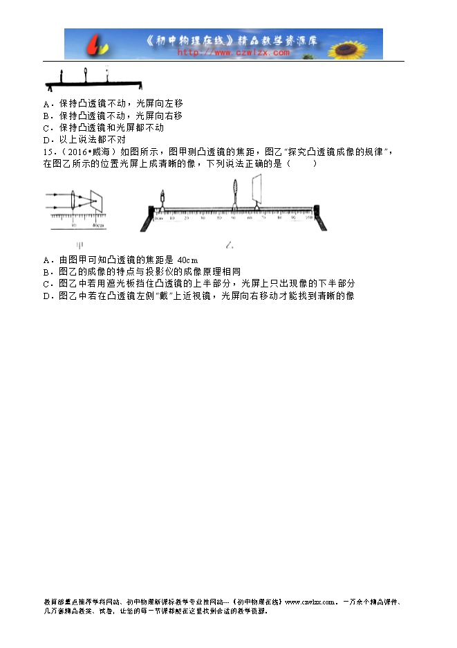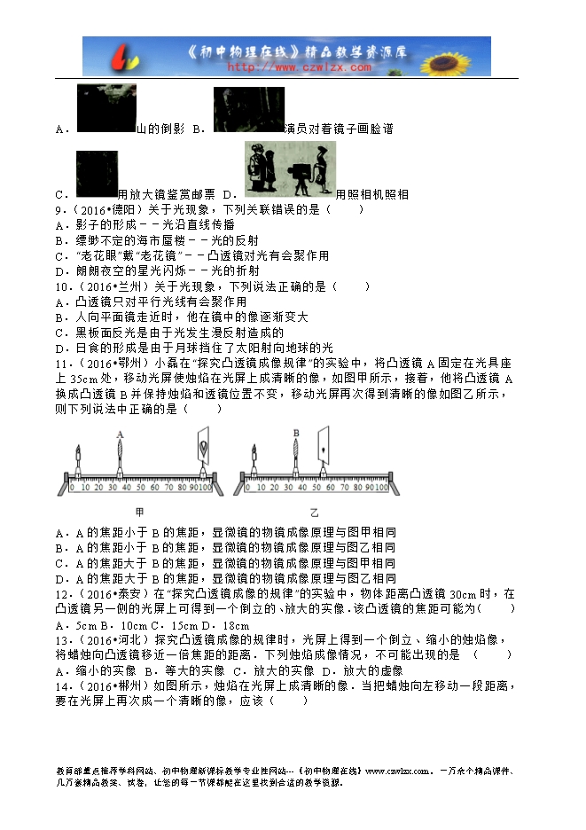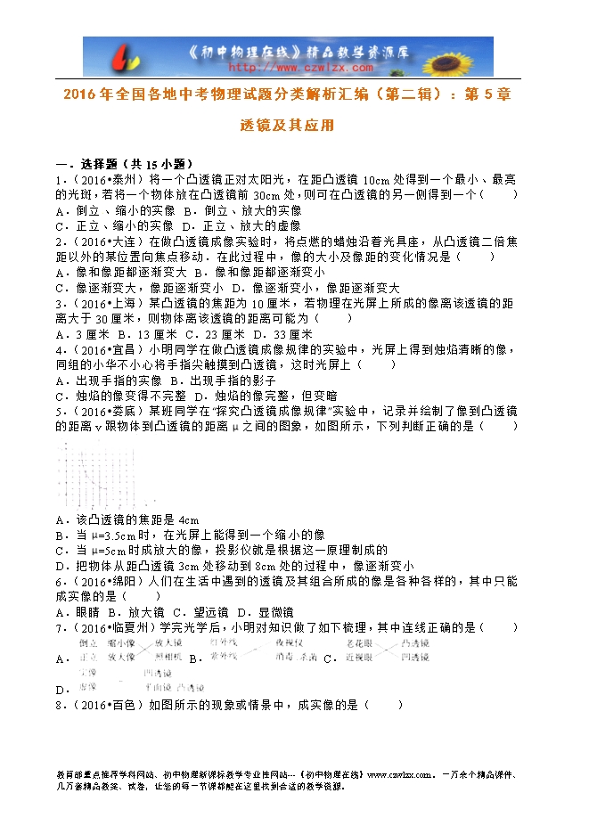 2016年全国各地中考物理试题分类解析汇编(第二辑):第5章 透镜及其应用
