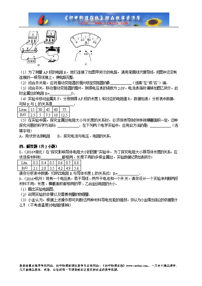 - 672025-2026学年新人教版九年级上学期物理课件:16.3电阻