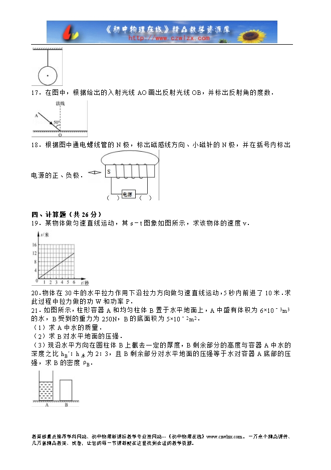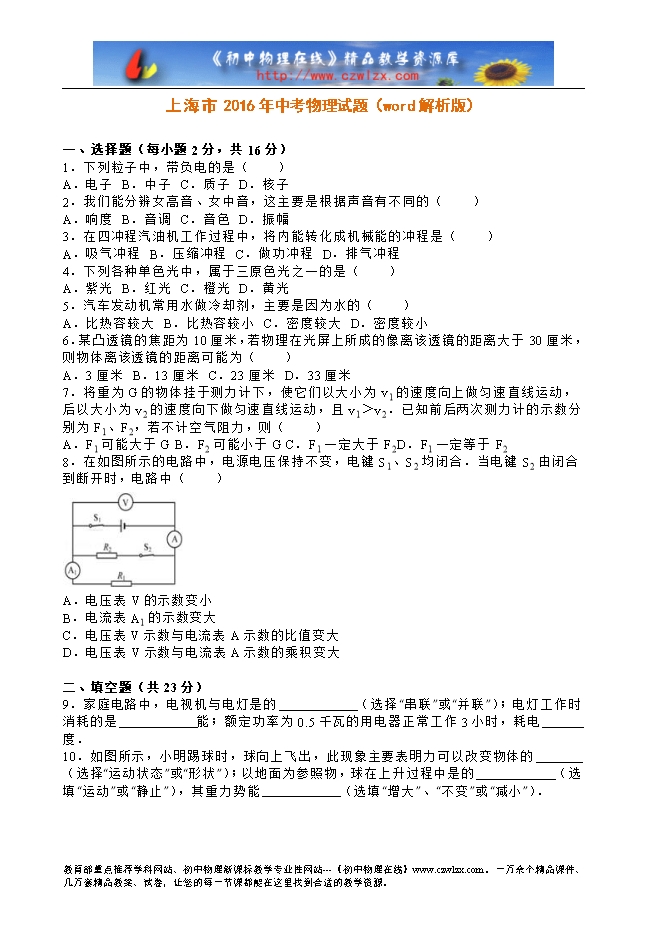 上海市2016年中考物理试题(word解析版)