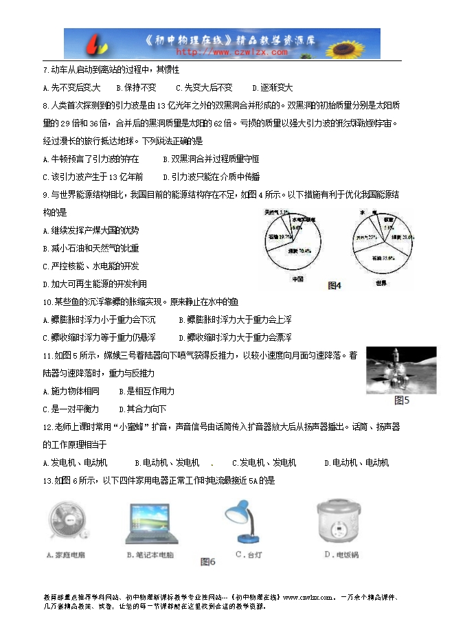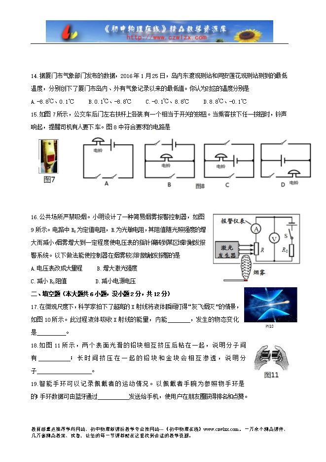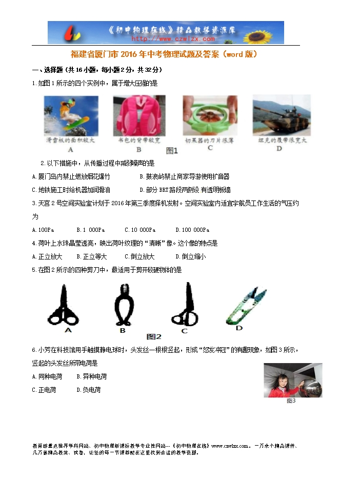 【内容简介】福建省厦门市2016年中考物理试题及答案(word版)