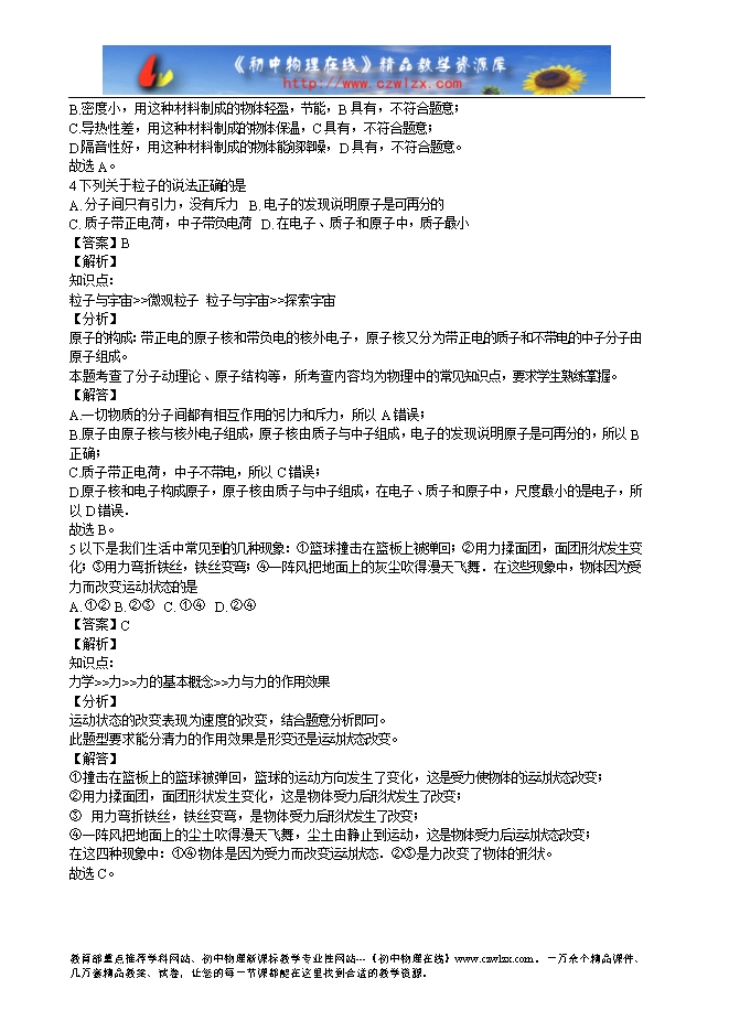 3 一种新型超轻“航空级玻璃棉”材料,应用在飞机机舱内,可以起到节能、保温、降噪的作用.这种材料不具有的物理属性是